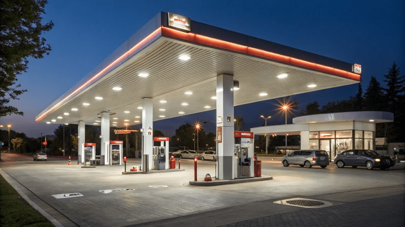 LED canoly lights: Ideal for illuminating large areas like fueling zones and parking lots.