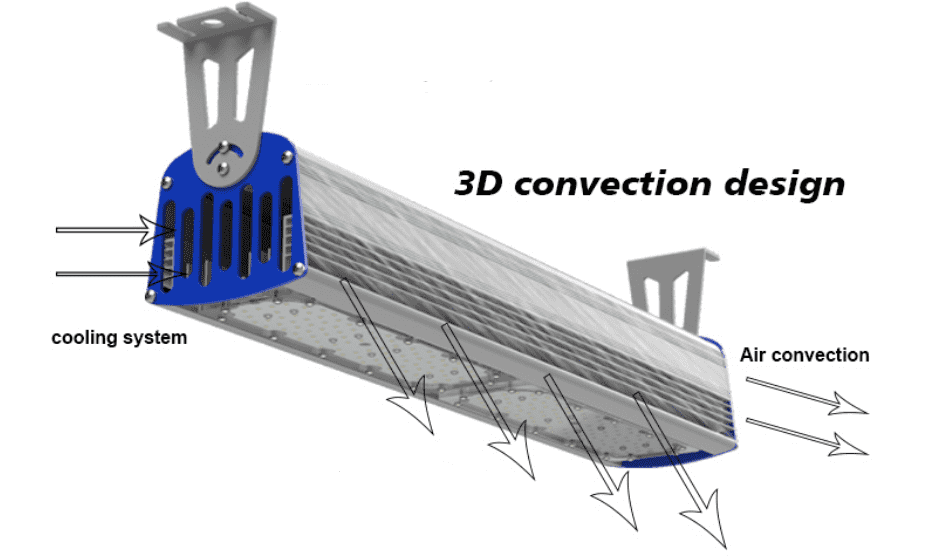 Heat is the single largest factor in premature LED failure and color shifting. This high bay light adopts heavy duty Aluminum body with thick radiator fins integrated both inside and outside of the housing. This allows for more thorough cooling of the LEDs for extended operating periods. This allows the LEDs to be driven at up to 90% capacity without overheating or visible loss of light output. The end result is more light with less heat and longer LED life with an average 70% lumen maintenance after 80,000 hours.