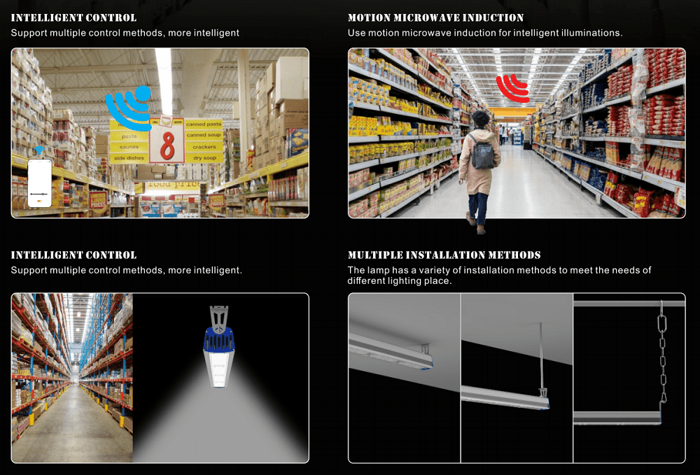 This new new linear high bay lamp adopts an all-aluminum housing and radiator integrated design, long linear shape body, with round and rectangular light distribution optional, high luminous efficiency and super bright design, it is a perfect lighting solution specially designed for large warehouses, workshops, shopping malls and logistics transit centers.