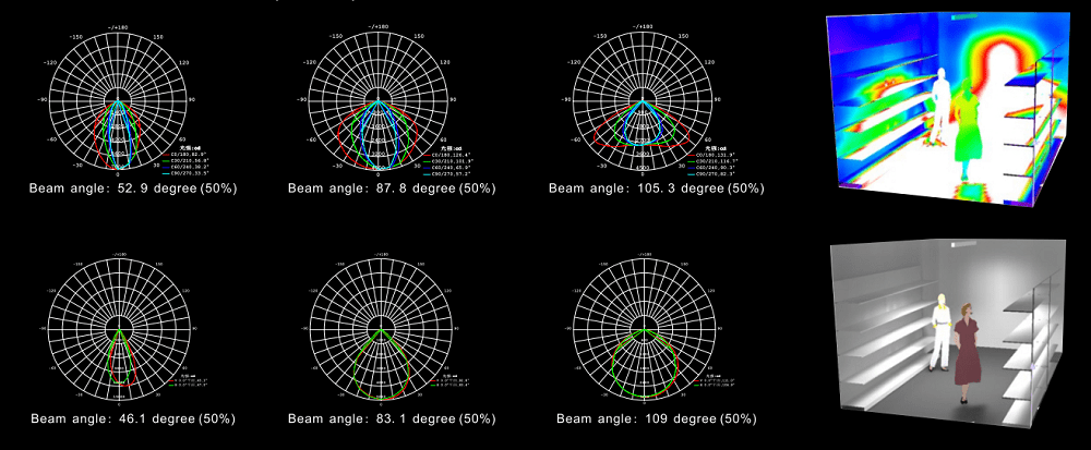 A full set of IES files for customers to do scene simulations can be provided. We can also help with simulation solutions for free, so that you can more intuitively see the lighting effects after installation, the brightness of the ground and the work surface.