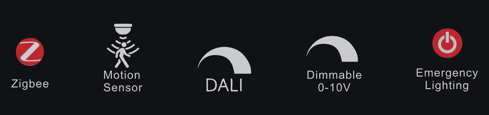 This high bay light can add smart control functions, such as Zigbee,Motion sensor dimming, DALI control, 0-10V dimming, and Emergency pack. It can realize automatic light switch, remote control through network, group control, emergency light function, which greatly reduces energy consumption and prolongs the service life of lamps.