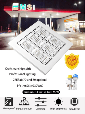The use of professionally designed LED canopy lamps at gas stations can not only enable drivers to clearly identify the location and highlight the brand logo of the gas station within a certain distance, but also achieve energy-saving effects in daily operation. More than 50% energy saving than traditional lighting fixtures. Minimum initial input costs and daily operating costs, in order to achieve energy efficiency.