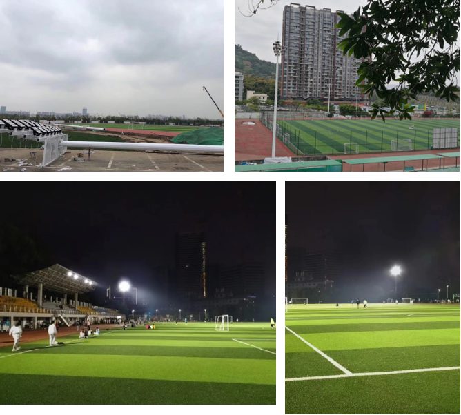 Content: The track and field (football) field includes a 400-meter standard track and football field. We choose 60pcs 600W stadium lights G series to replace the original 1000W traditional metal halide lights. The pole height is 15 meters, and the average illumination of the venue reaches 243lx, the degree of illumination reaches 0.52, which meets the I-level fitness and amateur training lighting standards, and creates lighting effects that exceed customer expectations.