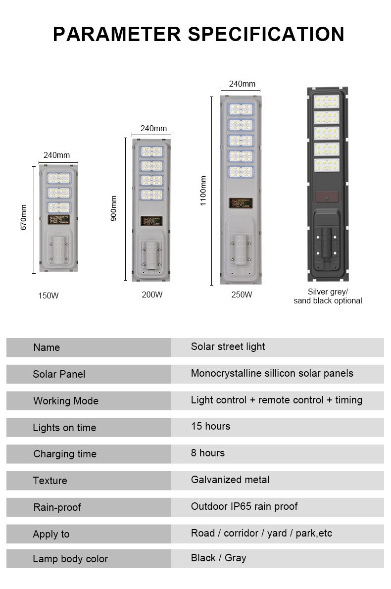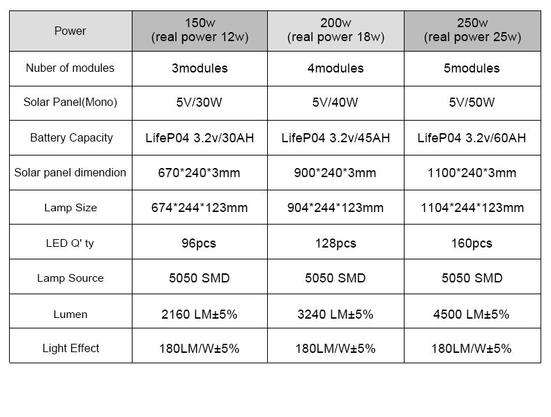 | Solar panel dimension | 670*240*3MM | 900*240*3MM | 1100*240*3MM |