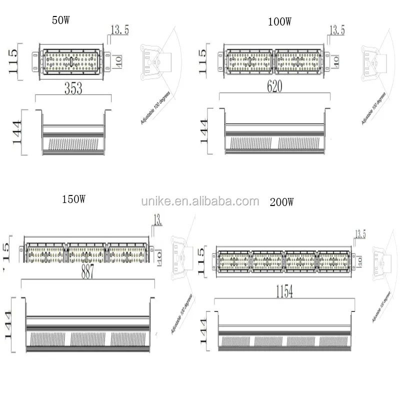 | Lamp Size/mm | 353*115*144 | 620*115*144 | 887*115*144 | 1154*115*14 | 1421*115*14 | 947*230*173 | 1218*230*173 | 1481*230*173 | 1724*230*173 |