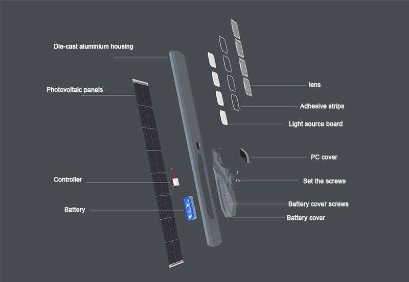 Battery | Solar Panel | LED | Lumen | Lamp body size |