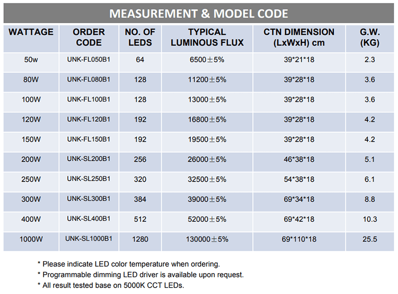 | Power | 50w | 100w | 150w | 200w | 250w | 300w | 400w | 1000w |