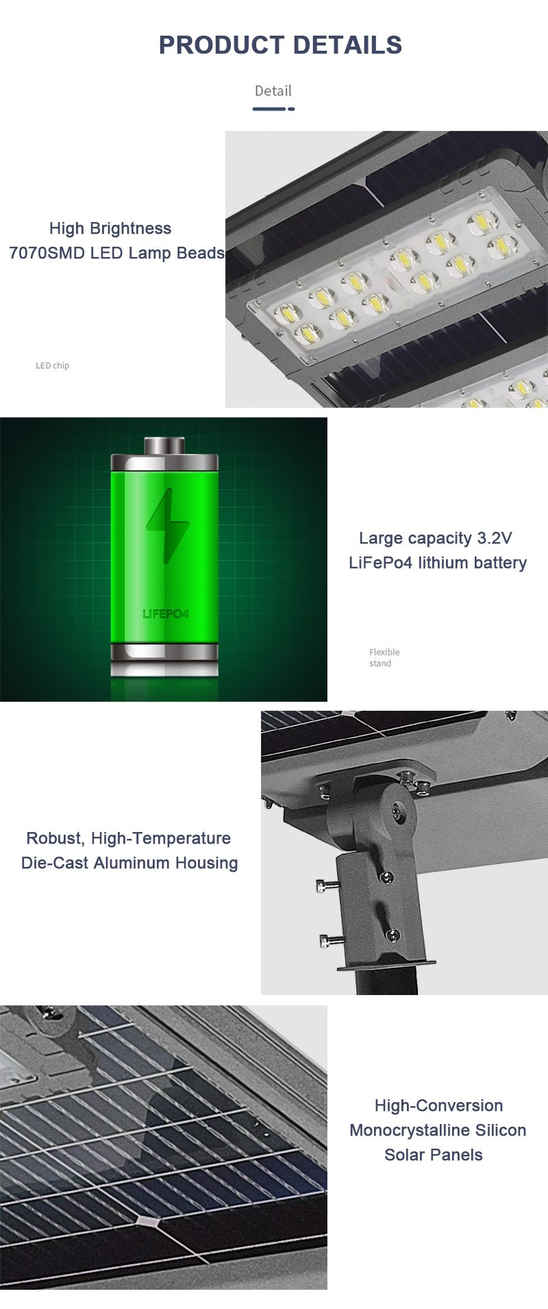 | 60W | 5 modules | 18V/102W Monocrystalline silicon | 480WH(3.2V/150AH) LiFePo4 Lithium battery | 7070SMD chips 36pcs | 1156*394.5*143mm | 8-9m |