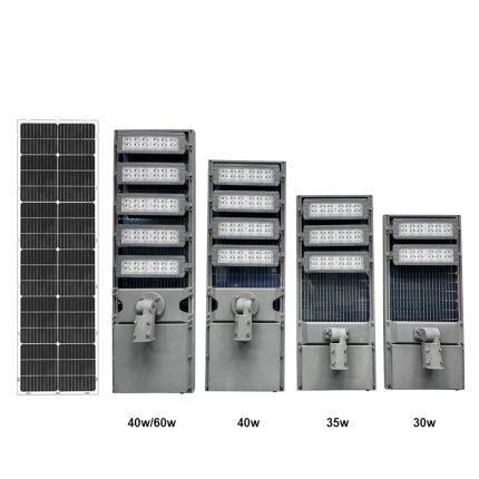 | 40w | 4 modules | 18V/80W Monocrystalline silicon | 3.2V/105AH LiFePo4 Lithium battery | 6600LM±5% | 6-7m | 1543*373*50MM |